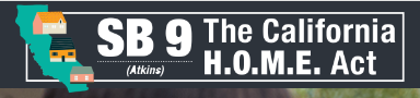 Senate Bill 9 (SB 9) – the California Housing Opportunity and More Efficiency (HOME) Act - is a California state law that went into effect at the beginning of 2022 intended to help alleviate housing shortages while fostering more sustainable urban growth and making California a more equitable, affordable, and livable state.